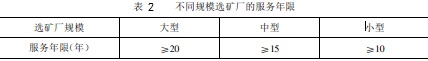 選礦廠的服務年限按礦山可靠的礦床工業儲量進行計算。它與選礦廠的規模有密切的關系,一般可參照表2確定。