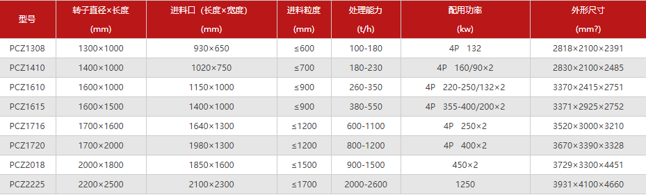 PCZ新型重錘式破碎機技術參數