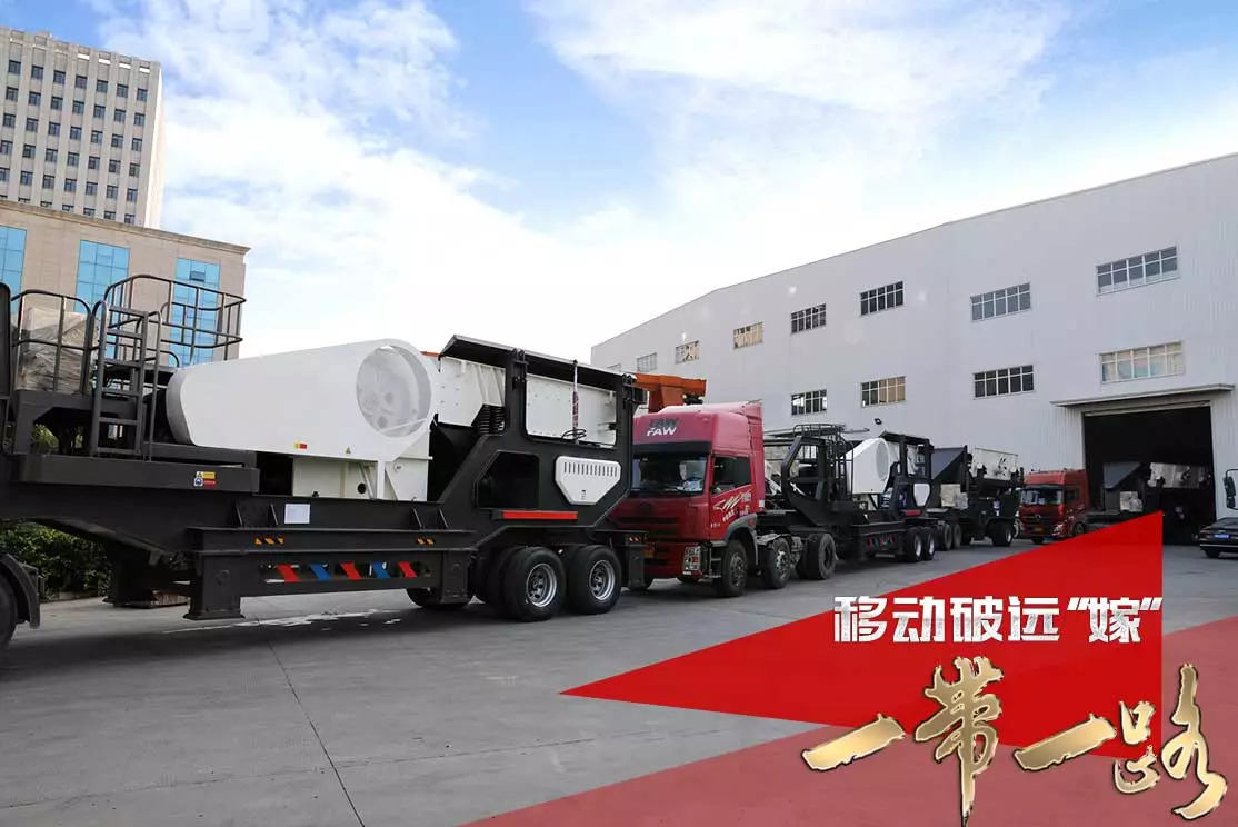 在紅星機器工廠2廠區,6臺移動破整裝待發,將被運往“一帶一路”沿線國家項目現場,助力當地基礎設施建設。