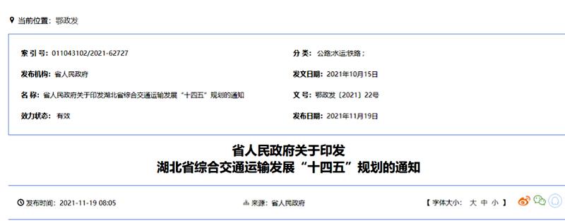 近日,《湖北省綜合交通運輸發展“十四五”規劃》印發,到2025年,湖北省綜合交通固定資產投資8200億元(不含城市交通),其中鐵路2400億元,公路水路5200億元,民航400億元,管道100億元。屆時,湖北全省鐵路營業里程將達到7000公里,其中高速鐵路達3000公里(目前為1600公里左右);二級及以上公路里程達到42000公里,其中高速公路總里程達到8000公里,具備條件的鄉鎮實現雙通道連通。