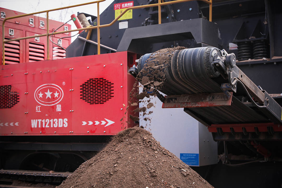 此次,紅星集團作為西安客戶的生產方案與設備提供商,在綜合考慮生產現場、物料類型、產量需求等方面的因素后,為客戶量身打造履帶式移動破碎篩分站,集給料機、反擊式破碎機、振動篩、動力、電控五大模塊于一體,一臺履帶站就是一條再生骨料生產線。