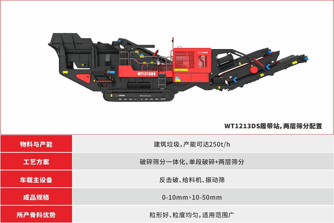 如西安客戶選用的為兩層篩的履帶站(WT1213DS,篩分規格:0-10mm、10-50mm),相應篩分出0-10mm、10-50mm兩種規格的骨料,還有三層篩的履帶站(WT1213D3S,篩分規格:0-10mm、10-20mm、20-31.5mm)可供客戶選擇。