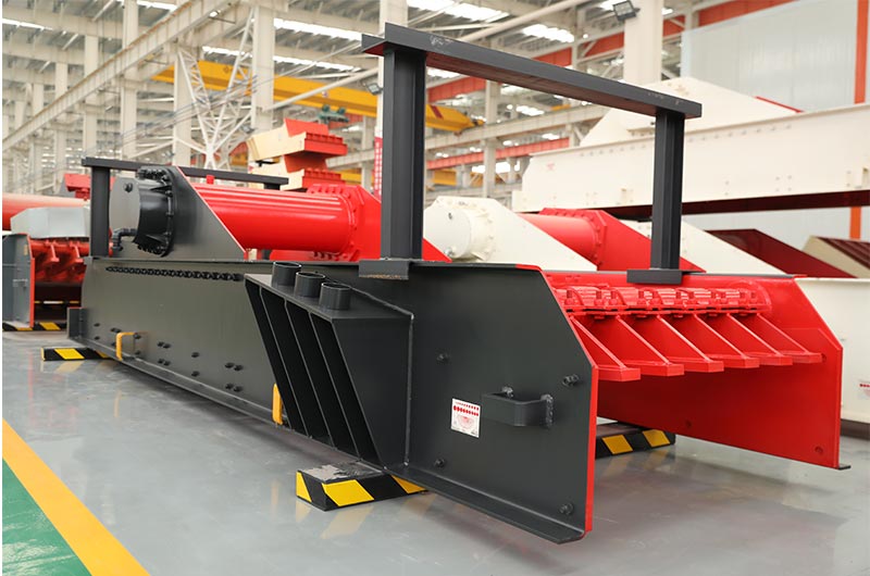 經過給料機傳輸過來的大塊石料,進入顎式破碎機,進行初次破碎。顎式破碎機,破碎比大,堪稱“老虎口”,是礦山界當之無愧的碎石先鋒。