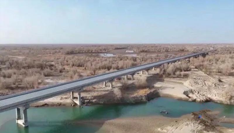 塔里木河特大橋全長將近1300米,是尉且沙漠公路全線唯一的一座橋梁,也是尉且沙漠公路成功跨越塔里木河的控制性工程。當時修建這座大橋,也是基于對當?shù)氐纳鷳B(tài)環(huán)境,基本農(nóng)田的保護。