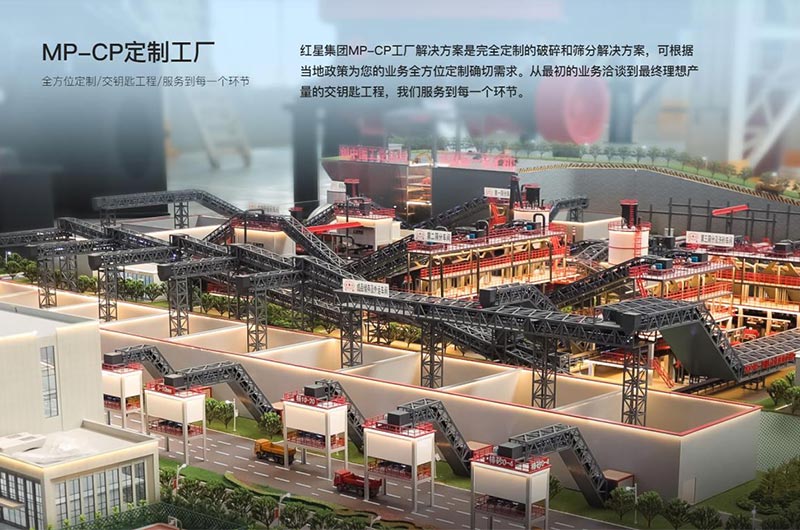 紅星集團MP-CP工廠解決方案是完全定制的破碎和篩分解決方案,可根據當地政策為您的業務全方位定制確切需求。從最初的業務洽談到最終理想產量的交鑰匙工程,我們服務到每一個環節。