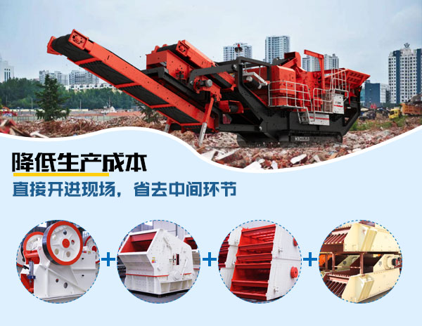履帶式顎破+反擊破移動破碎站可直接開進采石場現場作業,消除了破碎場地、環境、基礎配置對客戶破碎作業的障礙,降低了基礎設施安裝的繁瑣工序和工時消耗,降低物料運輸費用,降低了石料的生產成本,大幅度提高了采石場的經濟效益。