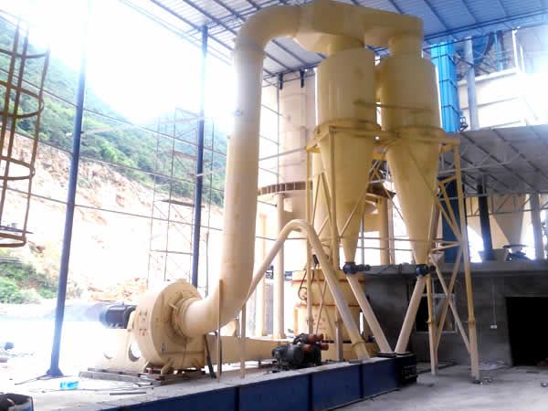 主要設備有:小型顎式破碎機、斗式提升機、超細磨粉機、料斗、集粉器、集電裝置等設備。目前日運轉:11小時,成品粒度保持在:150-400目超細粉。