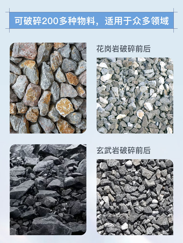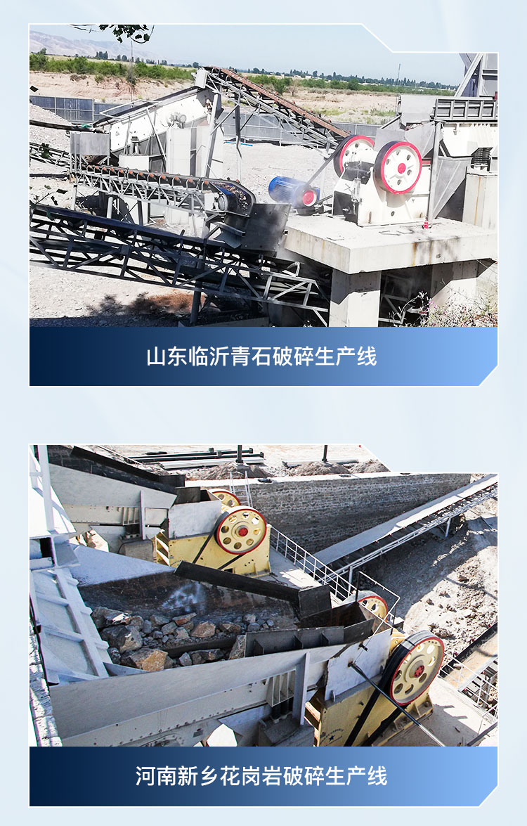 適用物料:河卵石、花崗巖、玄武巖、鐵礦石、石灰石、石英石、花崗巖等。