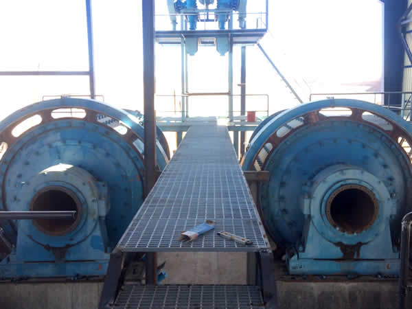 2、磨礦分級:儲料倉中的銅鉬礦經輸送機進入到球磨機中進行磨礦加工,研磨后進入到螺旋分級機中進行分級、洗選。