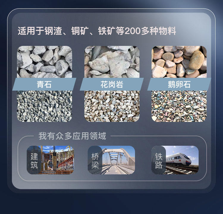 適用物料:河卵石、花崗巖、玄武巖、鐵礦石、石灰石、石英石、輝